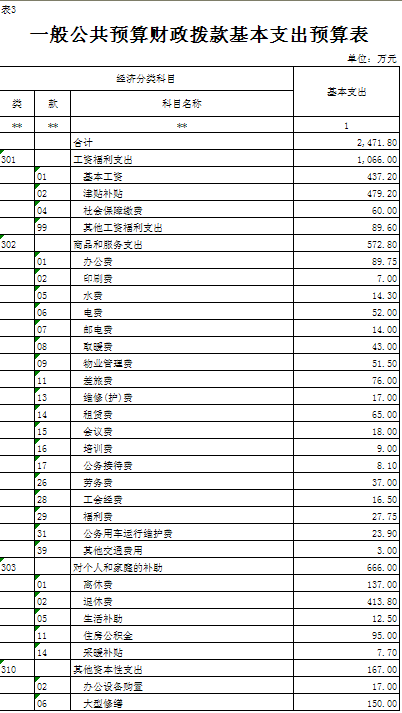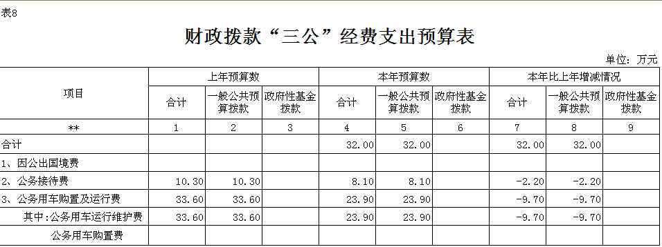 4、机关公用经费122.50万元,(其中:公务接待费3万元、公务用车运行维护费9万元)