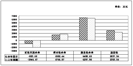 分地区看,全区供销合作社系统共21个汇总单位,其中盟市供销社13个(包括满洲里市),区社直属企业8个。除区社直属企业汇总暂体现亏损外,其他单位体现盈利。