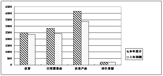 分行业看,“四大网络”企业营业收入52.26亿元,同比增加2.55亿元,增长5.12%,占全系统营业收入的91.69%。其中,农资企业实现营业收入13.47亿元,同比减少1.13亿元,下降7.73%,占全系统营业收入的23.63%;日用消费品企业实现营业收入17.12亿元, 同比增加1.71亿元,增长11.11%,占全系统营业收入的30.04%;农畜产品企业实现营业收入19.98亿元,同比增加1.85亿元,增长10.2%,占全系统营业收入的35.06%;再生资源企业实现营业收入1.69亿元,同比增加1119.24万元,增长7.09%,占全系统营业收入的2.97%;其他业务企业实现营业收入4.73亿元,同比增加8784.32万元,增长22.78%,占全系统营业收入的8.31%。