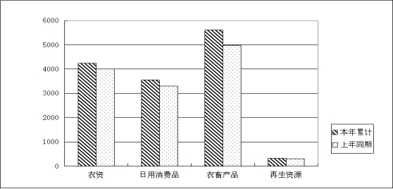 分行业看,“四大网络”企业营业收入77.05亿元,同比增加5.42亿元,增长7.57%,占全系统营业收入的91.94%。其中,农资企业实现营业收入22.04亿元,同比减少1.74亿元,下降7.33%,占全系统营业收入的26.3%;日用消费品企业实现营业收入24.82亿元, 同比增加3.43亿元,增长16.02%,占全系统营业收入的29.62%;农畜产品企业实现营业收入27.64亿元,同比增加3.37亿元,增长13.88%,占全系统营业收入的32.99%;再生资源企业实现营业收入2.54亿元,同比增加3681.01万元,增长16.97%,占全系统营业收入的3.03%;其他业务企业实现营业收入6.75亿元,同比增加1.4亿元,增长26.18%,占全系统营业收入的8.06%。