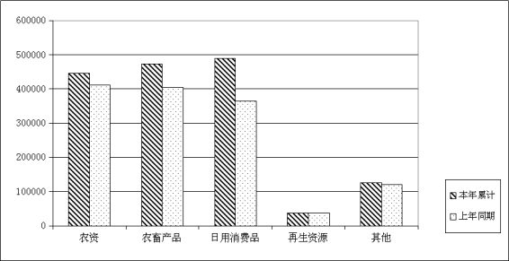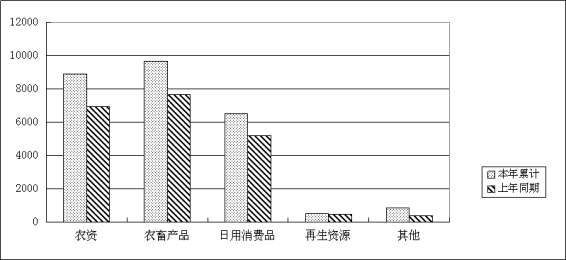 分行业看,“四大网络”企业营业收入144.64亿元,同比增加22.75亿元,增长18.66%,占全系统营业收入的91.98%。其中,农资企业实现营业收入44.6亿元,同比增加3.41亿元,增长8.28%,占全系统营业收入的28.36%;农畜产品企业实现营业收入47.34亿元,同比增加6.92亿元,增长17.11%,占全系统营业收入的30.1%;日用消费品企业实现营业收入48.93亿元, 同比增加12.42亿元,增长34.01%,占全系统营业收入的31.12%;再生资源企业实现营业收入3.78亿元,同比增加2.28万元,增长0.01%,占全系统营业收入的2.4%;其他业务企业实现营业收入12.6亿元,同比增加6107.17万元,增长5.09%,占全系统营业收入的8.02%。