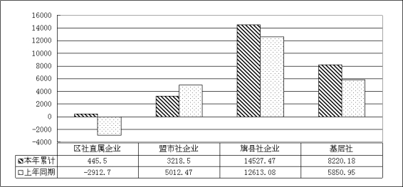 分地区看,全区供销合作社系统共21个汇总单位,其中盟市社13个(包括满洲里市),区社直属企业8个。除乌海市供销合作社暂体现亏损,其他单位全部盈利。
