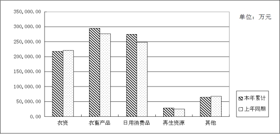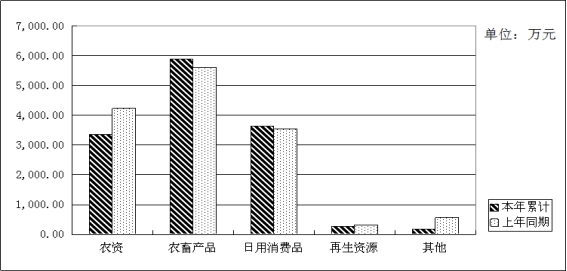 分行业看,“四大网络”企业营业收入81.59亿元,同比增加4.55亿元,增长5.9%,占全系统营业收入的92.68%。其中,农资企业实现营业收入21.79亿元,同比减少2572.94万元,下降1.17%,占全系统营业收入的24.75%;农畜产品企业实现营业收入29.49亿元, 同比增加1.85亿元,增长6.69%,占全系统营业收入的33.5%;日用消费品企业实现营业收入27.44亿元,同比增加2.62亿元,增长10.54%,占全系统营业收入的31.17%;再生资源企业实现营业收入2.88亿元,同比增加3390.45万元,增长13.36%,占全系统营业收入的3.27%;其他业务企业实现营业收入6.44亿元,同比减少3087.48万元,下降4.57%,占全系统营业收入的7.32%。