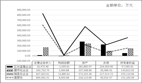 一、全区系统主要经济指标完成情况 1-6月份,全区供销合作社系统实现主营业务收入161.27亿元,比上年同期增加4.02亿元,增长2.56%;利润总额2.47亿元,同比减少1698.08万元,下降6.43%;社会贡献总额5.18亿元,同比减少1162.7万元,下降2.2%。 6月末,全区供销合作社系统资产总额130.78亿元,同比增加6.4亿元,增长5.1%;负债总额60.02亿元,同比增加1.75亿元,增长3%;所有者权益70.76亿元,同比增加4.66亿元,增长7%。资产负债率45.9%,同比下降1个百分点。 全区系统汇总企业1126户,同比增加55户,增长5.1%,其中全系统基层社汇总616户,同比增加30户,增长5.1%。 分层级主要财务指标完成情况表 根据总社下发的《供销合作社企业财务报表管理规范(试行)》要求,从2016年起,财务报表系统新增用户必须是供销社持股企业,不再新增开放办社企业。 二、主要财务指标分地区完成情况 (一)主营业务收入 1-6月份,全区供销合作社系统实现主营业务收入161.27亿元,比上年同期增加4.02亿元,增长2.56%。增长水平同比低于全区系统平均水平的单位有:区社直属企业汇总-29.9%;通辽市-16.8%;满洲里市-3.3%;巴彦淖尔市-2.3%;包头市1.3%。 分地区主营业务收入完成情况表(单位:万元)
