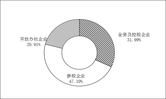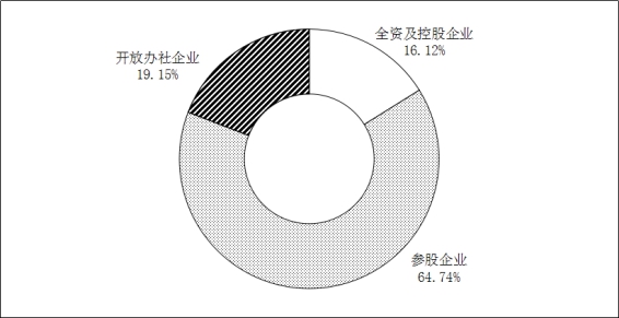 从股权结构看,供销合作社全资及控股企业实现营业收入59.86亿元,同比减少2.05亿元,下降3.31%,占全系统营业收入的31.99%;供销合作社参股企业实现营业收入88.13亿元,同比增加7.36亿元,增长9.12%,占全系统营业收入的47.1%;开放办社企业实现营业收入39.13亿元,同比增加3.86亿元,增长10.94%,占全系统营业收入的20.91%。