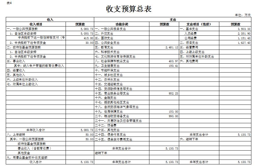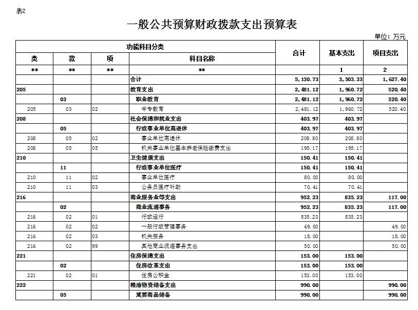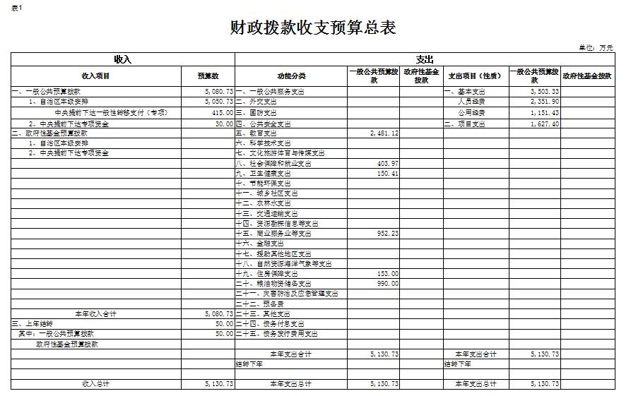 财政拨款收支预算5130.73万元,包括:一般公共预算财政拨款5130.73万元,无政府性基金预算财政拨款;