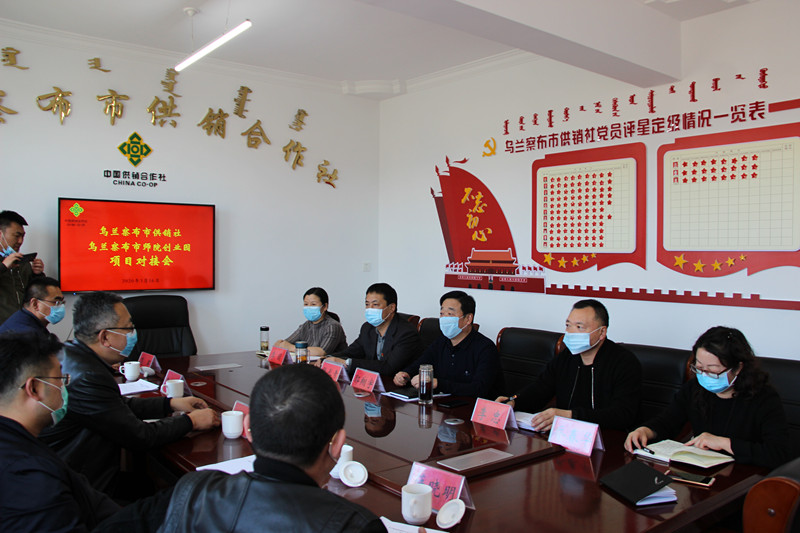 3月16日上午,乌兰察布市供销合作社与乌兰察布市师范学院创业园举行项目对接座谈会。市供销合作社党组书记、主任郭翔宇主持会议,师范学院就业处处长刘国义,市创业孵化园企管部部长朱维嘉,正合云商、新丝路传媒相关企业负责人,市供销合作社副调研员张长青及部分科室负责人参加会议。