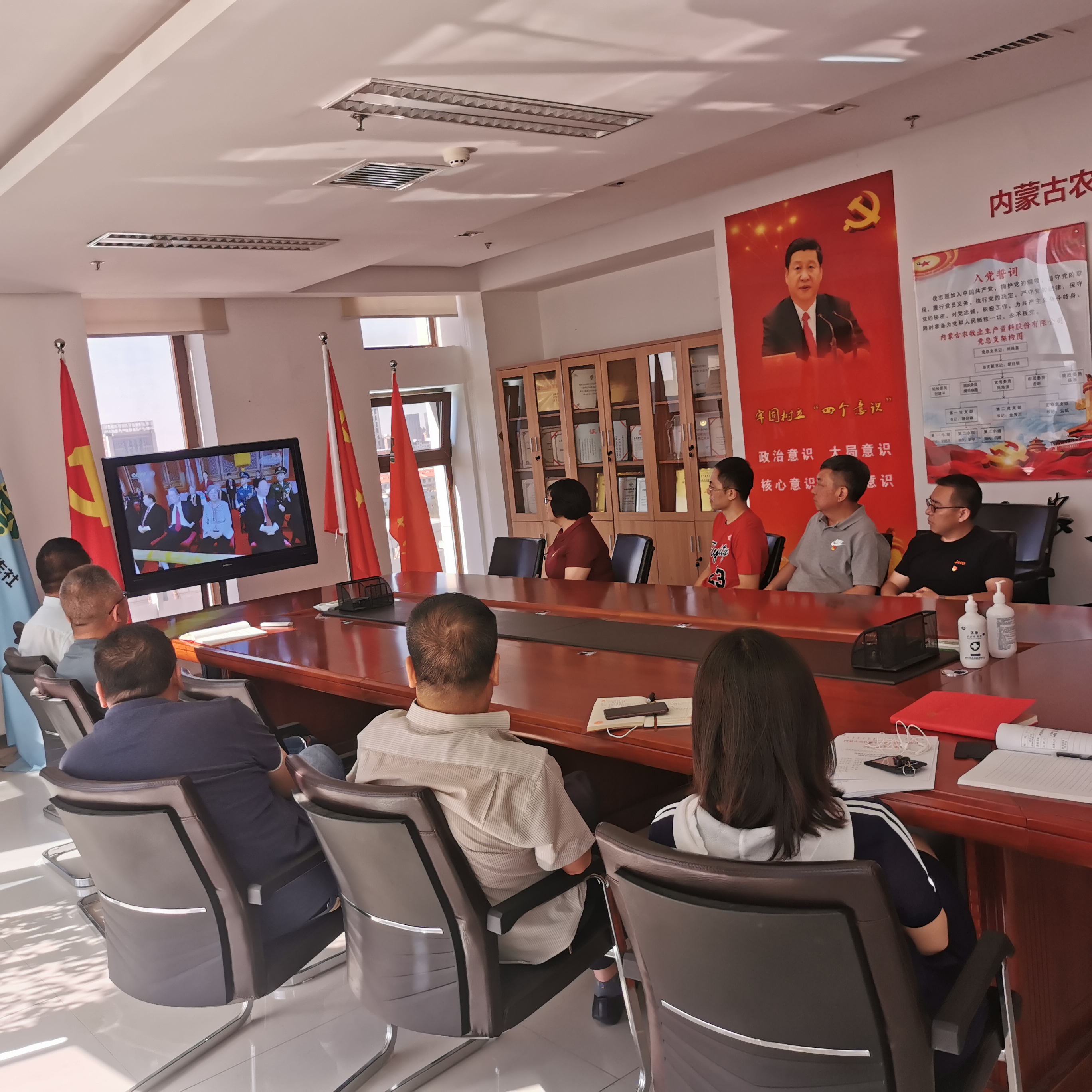 2021年7月1日上午,庆祝中国共产党成立100周年大会在北京天安门广场隆重举行;上午8:00时,内蒙古农资公司党总支组织全体党员干部观看大会视频直播。聆听了中共中央总书记、国家主席、中央军委主席习近平发表的重要讲话。