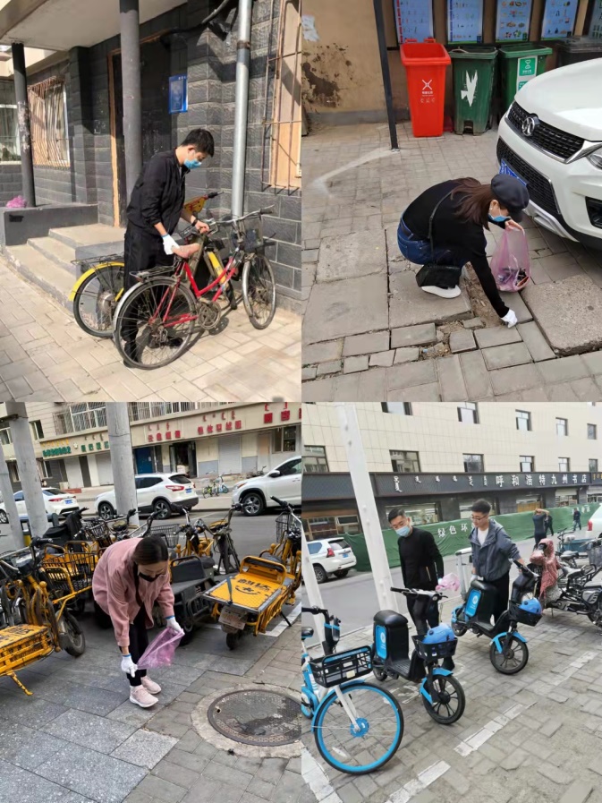 活动中,青年志愿者们手拿铲子、垃圾袋、喷壶等工具,对小区内墙面乱贴乱画的小广告、白色垃圾、烟头树叶等进行全面清理。同时对非机动车和共享单车进行整齐摆放,劝导居民文明养犬,号召居民和周边商户从自身做起,积极投身到文明城市创建中,共同营造干净整洁有序的生活环境。