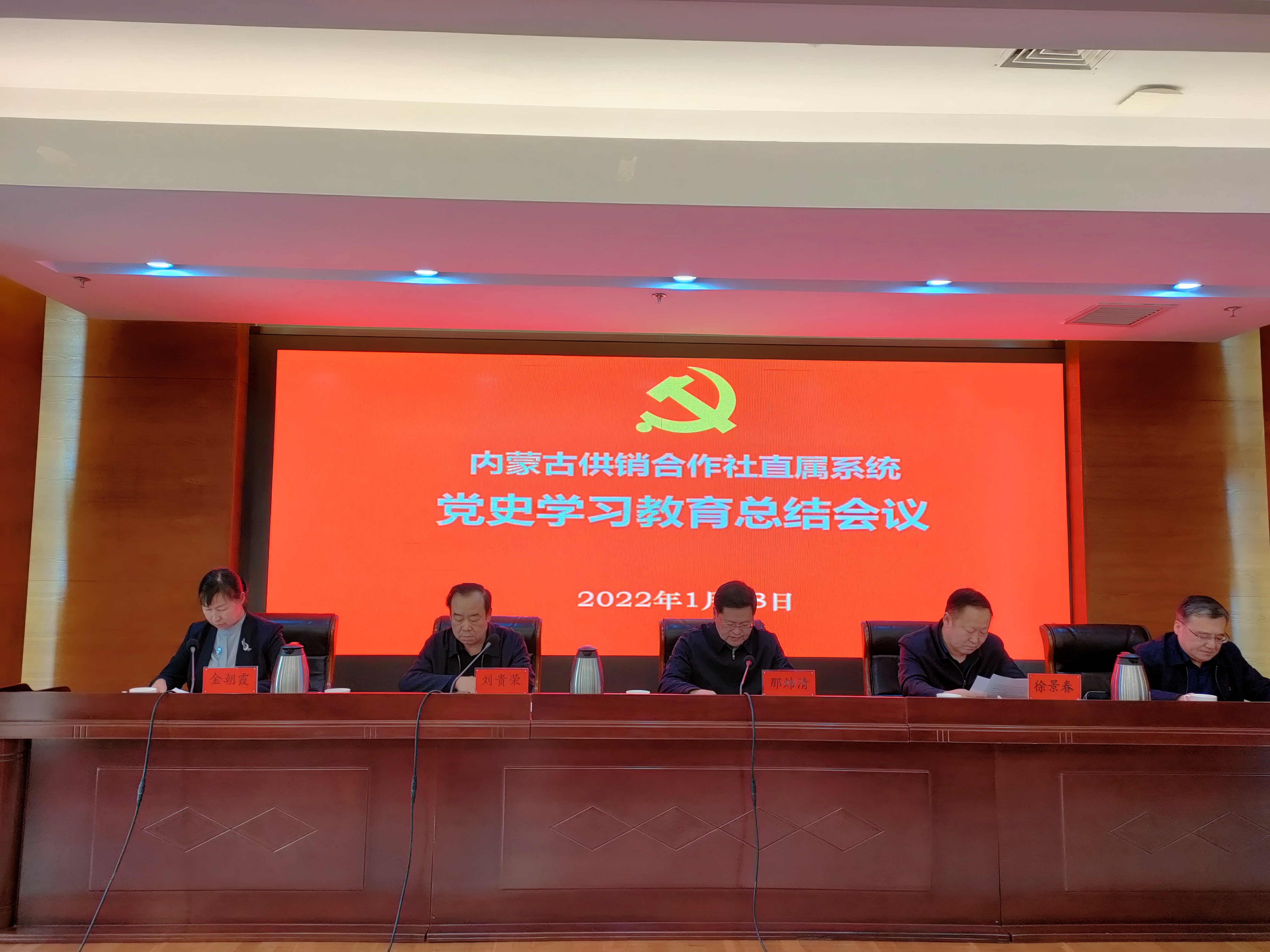 1月28日下午,内蒙古供销合作社召开直属系统党史学习教育总结大会,通报一年以来党史学习教育总体情况,对巩固拓展党史学习教育成果进行安排部署。区社党组书记、理事会主任那炜清主持会议并讲话,区社党组成员、理事会副主任、机关党委书记金朝霞作总结报告。区社在家的领导班子成员、机关副处级以上领导干部、直属各单位领导班子成员和各党支部党建工作助理参加会议。
