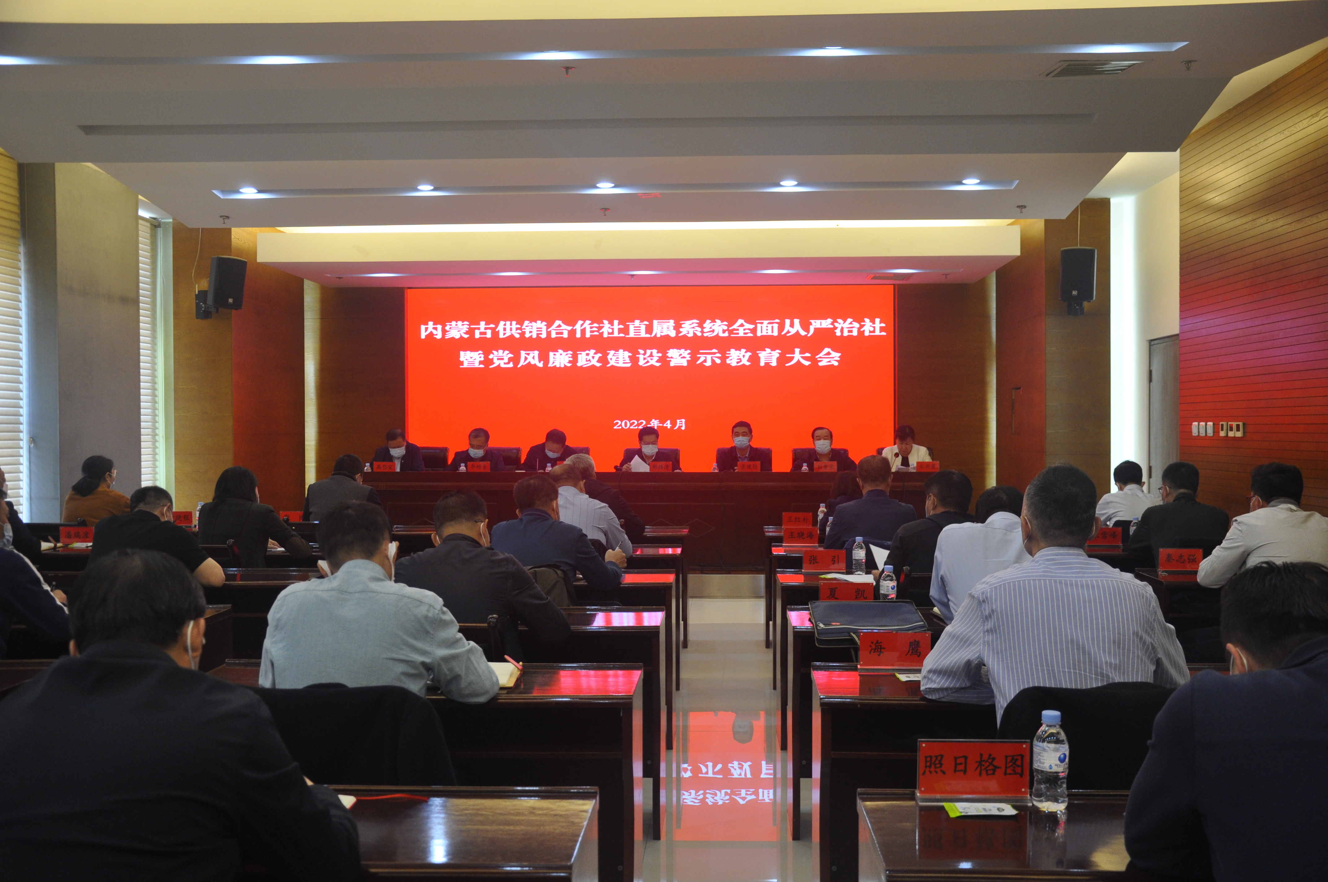 为了深入学习贯彻十九届中央纪委六次全会、自治区纪委十一届二次全会和全国供销总社全面从严治社电视电话会议精神,进一步加强区社直属系统党风廉政建设和反腐败工作,持续有力推进巡视审计和重点整治发现问题整改,以案促改、以案促建、以案促治,教育引导广大党员干部更加清醒自觉地知敬畏、存戒惧、守底线,以更大的决心和力度推动全面从严治党从严治社向纵深发展,内蒙古自治区供销合作社直属系统于4月6日召开全面从严治社暨党风廉政建设警示教育大会。区社党组成员、理事会副主任金朝霞主持会议;区社监事会主任徐景春通报了全区供销系统腐败问题重点整治部分违规违纪违法典型案例;区社党组书记、理事会主任那炜清,自治区纪委监委驻商务厅纪检监察组组长景建勋分别讲话,区社领导班子全体成员出席会议。
