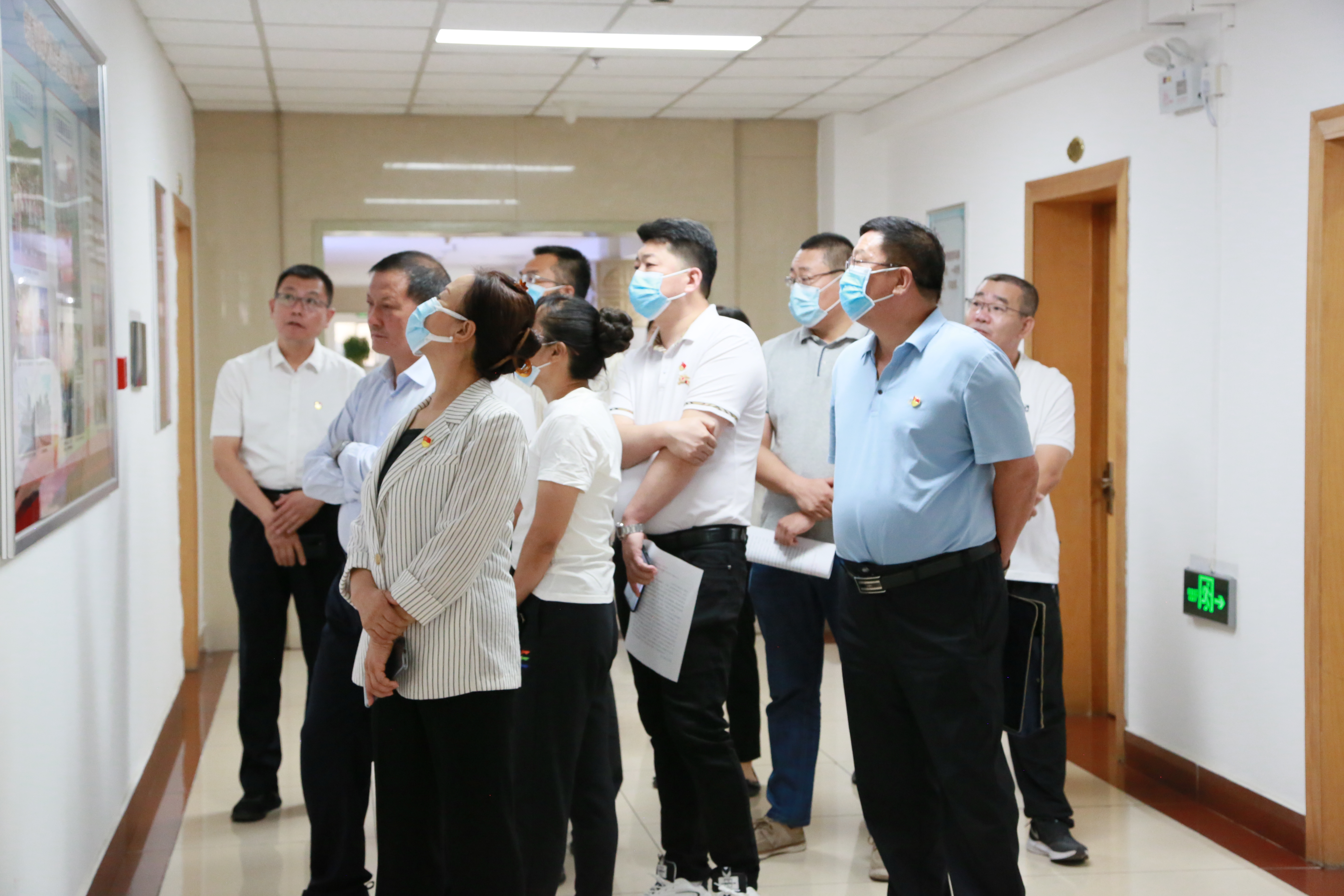 图为:在讲解员带领下参观党建文化长廊