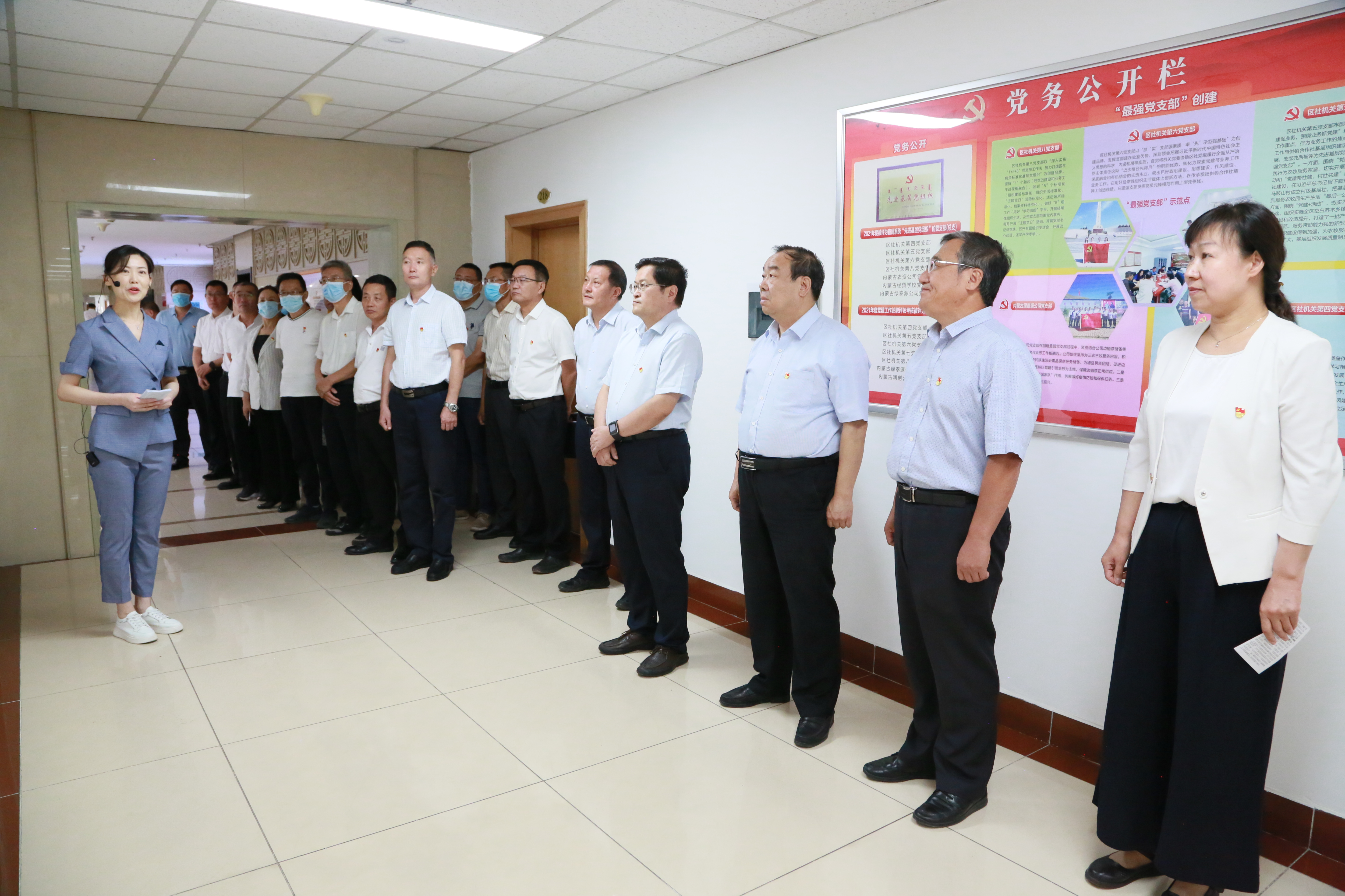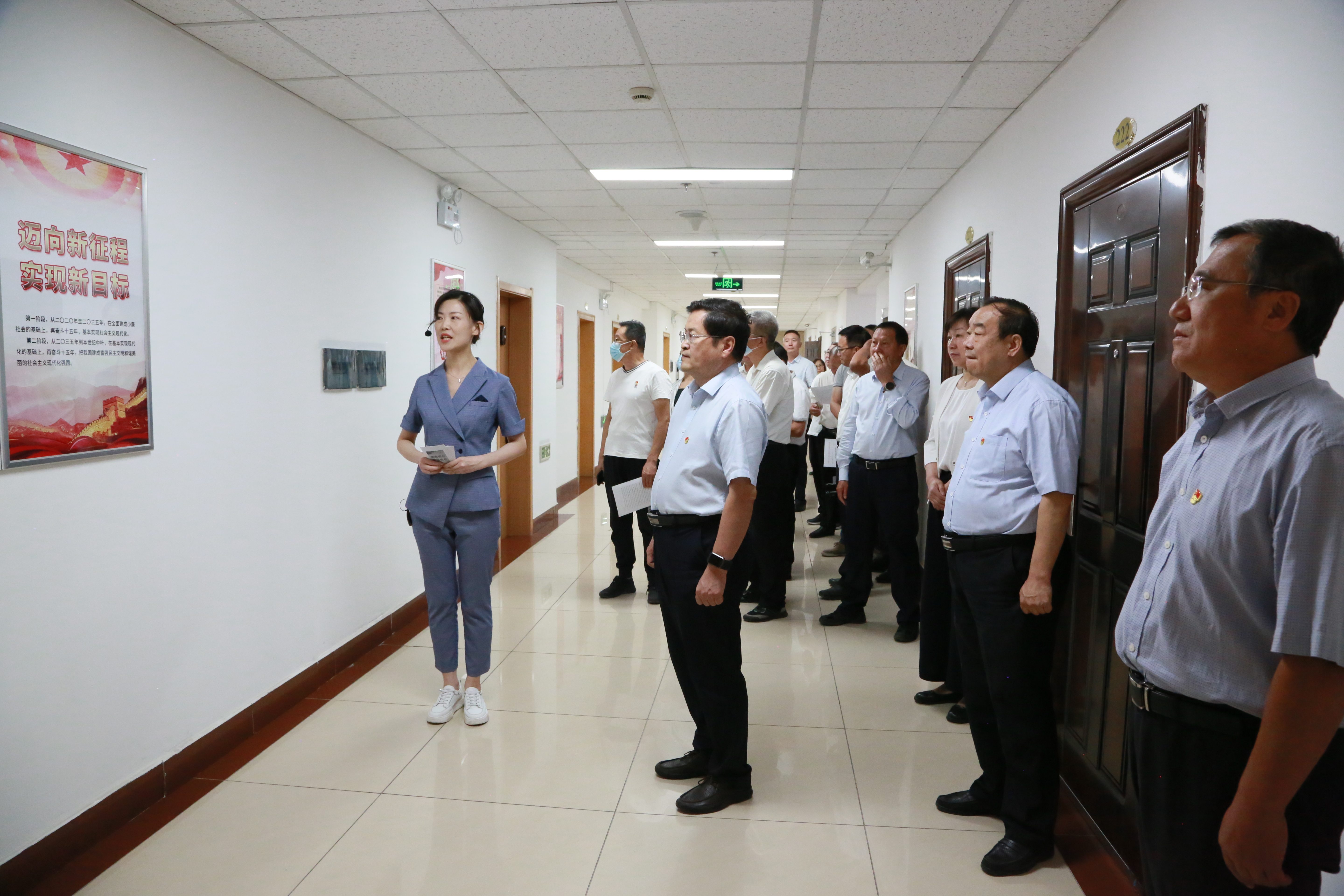为深入推进内蒙古供销合作社(以下简称“区社”)“北疆模范机关”和精神文明单位创建工作,以实际行动迎接党的二十大胜利召开。区社机关党委按照文明单位测评标准和模范机关创建相关要求,本着简洁明快、大方实用、突出重点、节约集成的原则,在机关二楼办公区完成了党建文化长廊建设。为做好文化长廊的学习推广应用,8月23日,区社机关党委组织开展了“牢记嘱托传承文化 担当作为提振精神”主题党日活动。区社领导班子成员、直属各党支部(总支)书记、机关副处级以上党员干部参加学习观摩。