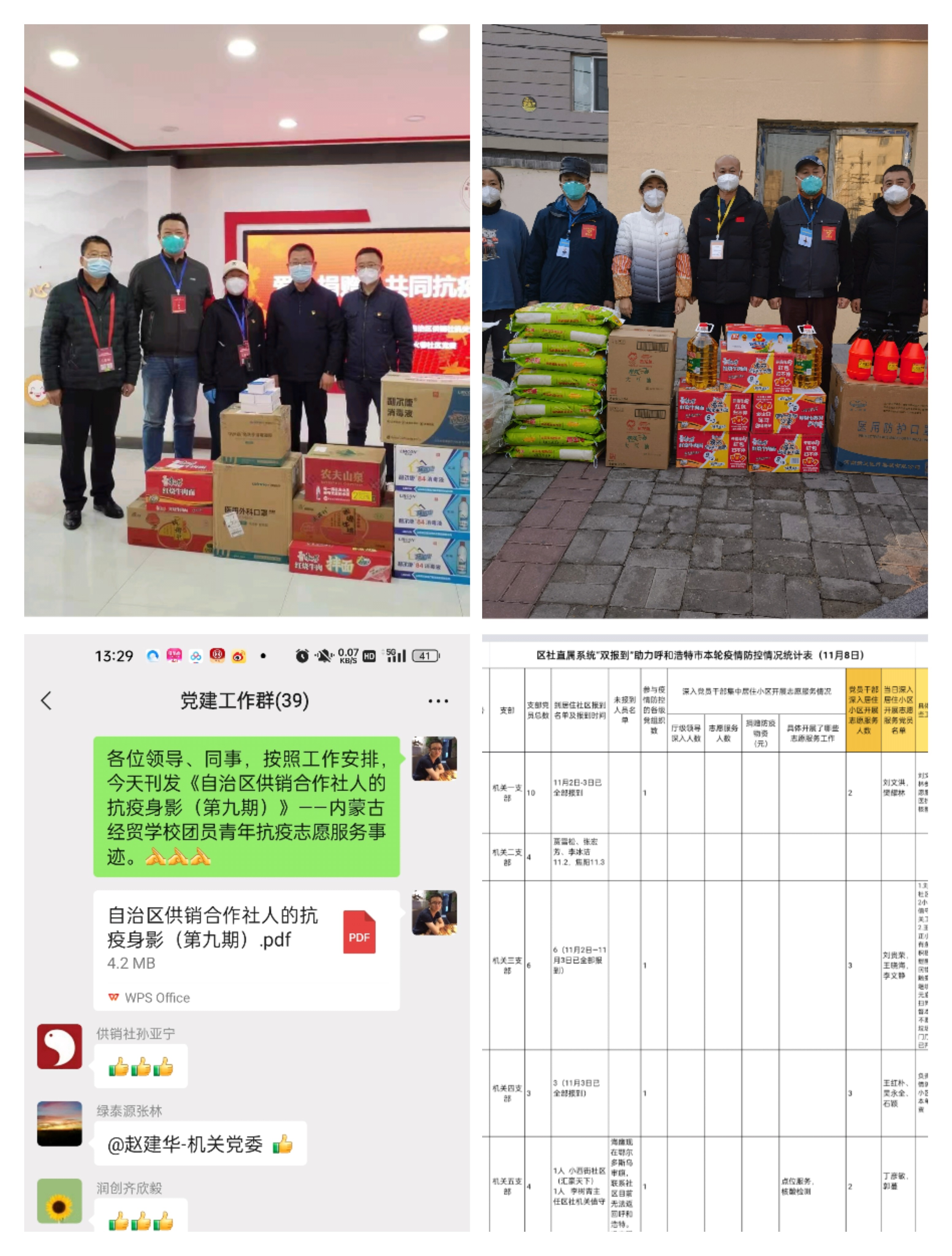 呼和浩特市本轮疫情发生以来,区社党组、机关党委坚决落实自治区党委政府决策部署和直属机关工委工作要求,充分发挥直属系统基层党组织战斗堡垒和党员干部先锋模范作用,闻令而动、向疫而行,以点滴之力,汇抗疫洪流,先后组织动员142名在职党员到包联社区和居住社区小区报到,选派2名处级干部下沉包联社区协助开展疫情防控,把供销合作社人的抗疫身影投放到抗疫斗争的具体实践当中。