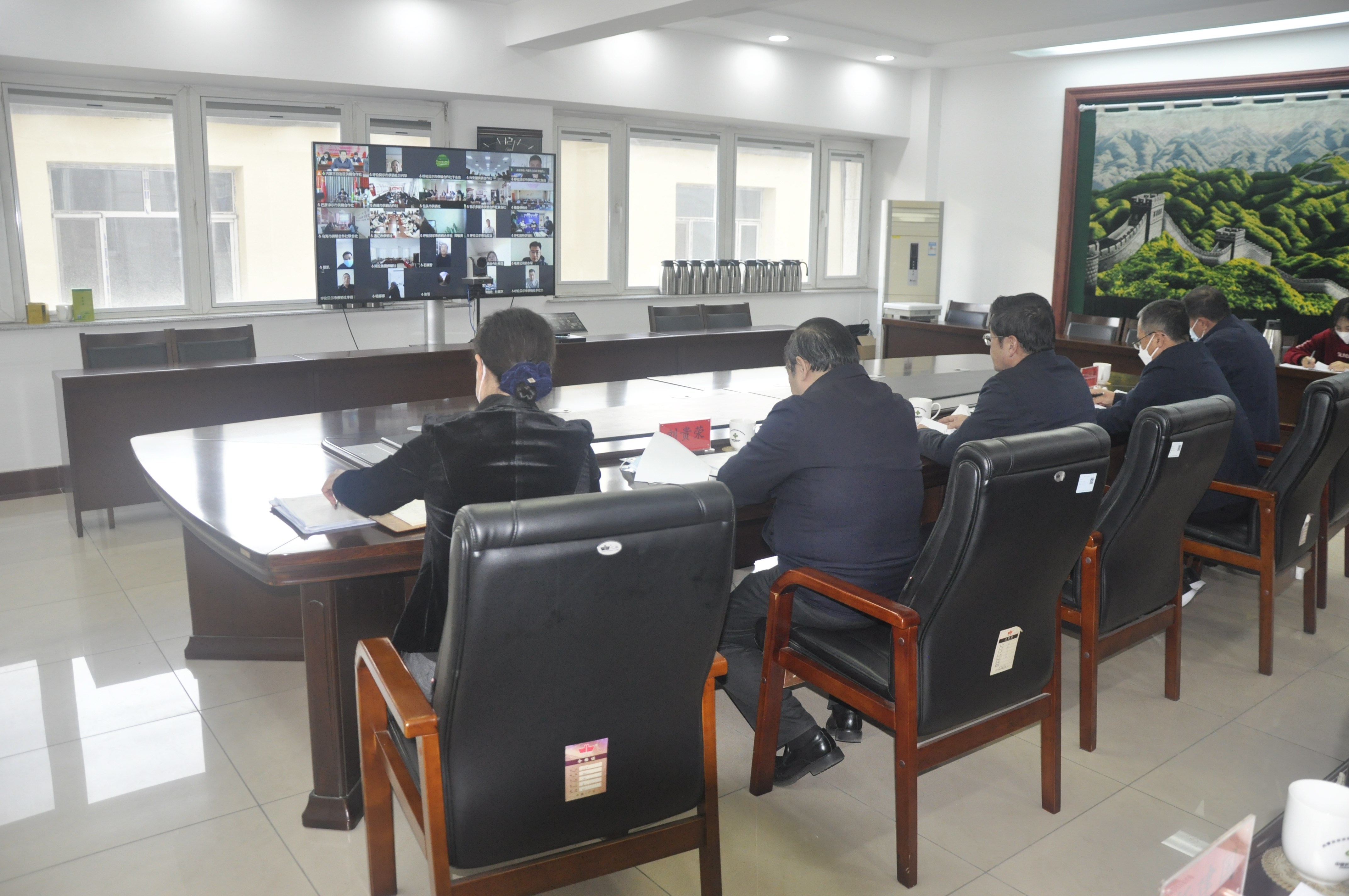 图为:自治区供销合作社召开全区供销合作社系统经济运行视频会议。