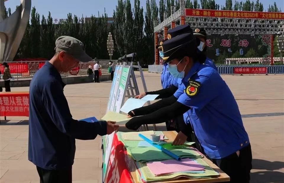 为全面贯彻落实国家、自治区和盟委行署关于商品过度包装和塑料污染治理有关工作部署,推进我盟商品过度包装和塑料污染治理工作,6月20日,盟委宣传部、盟发展改革委、盟市场监管局、盟商务局等多家单位在巴彦浩特新世纪广场联合开展主题为“减装降塑,从我做起”的2023年商品过度包装和塑料污染治理专项整治宣传月集中宣传活动。