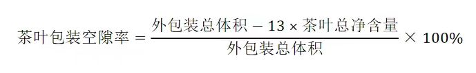 当一个茶叶产品的总净含量和内含所有独立小包装的净含量确定时,可以通过包装空隙率的计算公式和包装空隙率的要求得到该产品允许的最大外包装体积。将产品实际外包装体积与允许的最大外包装体积进行比较,若小于等于允许的最大外包装体积,则该产品包装空隙率合格;若大于允许的最大外包装体积,则该产品包装空隙率不合格。