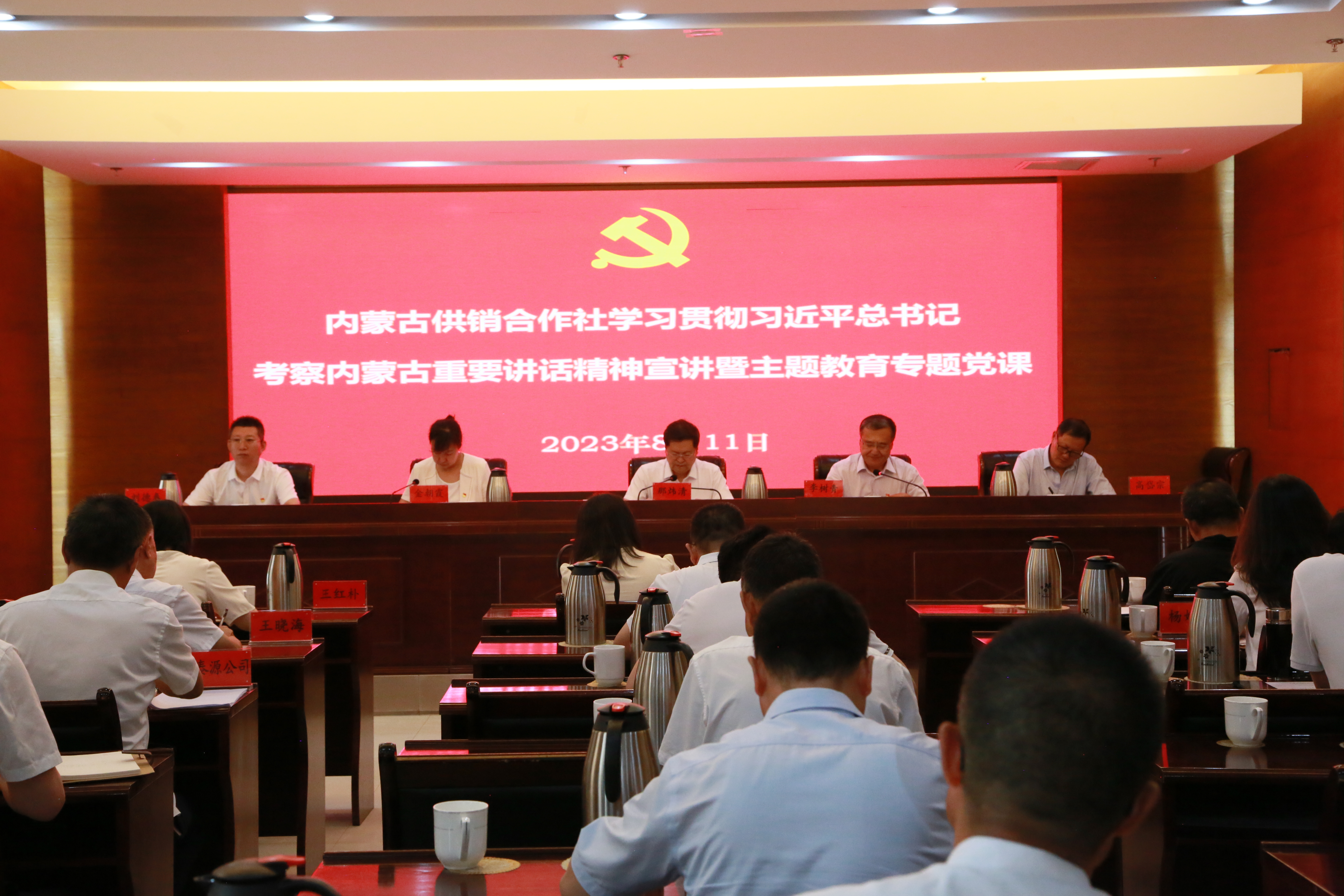 为深入贯彻落实习近平总书记在内蒙古考察时的重要讲话重要指示精神和自治区党委十一届六次全会精神,深刻领悟以学铸魂、以学增智、以学正风、以学促干重要要求,推动主题教育取得扎实成效。8月11日下午,自治区供销合作社(以下简称“区社”)开展学习贯彻习近平总书记考察内蒙古重要讲话精神宣讲暨主题教育专题党课活动,区社党组书记、理事会主任那炜清为直属系统党员干部讲授题为《以扎实开展主题教育的丰硕成果,努力开创全区供销合作事业发展新局面》的主题教育专题党课,区社党组成员、理事会副主任金朝霞作《牢记嘱托,奋力书写中国式现代化内蒙古新篇章》主题宣讲。区社党组成员、理事会副主任李树青主持会议并讲话,区社在家领导班子成员、直属各单位班子成员和区社机关全体党员干部参加会议。