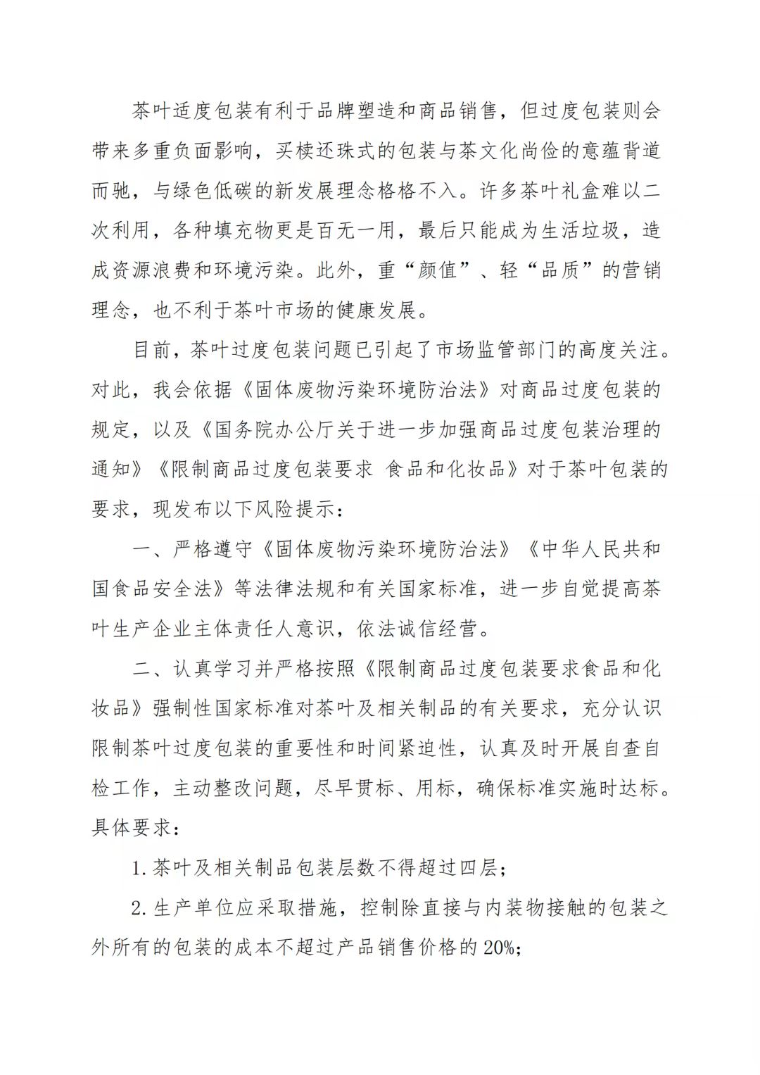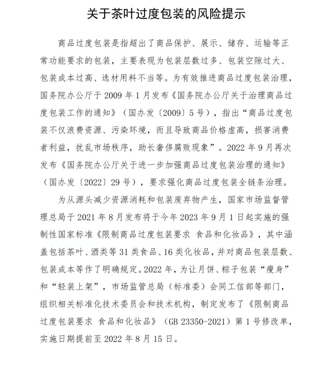 关于茶叶过度包装的风险提示