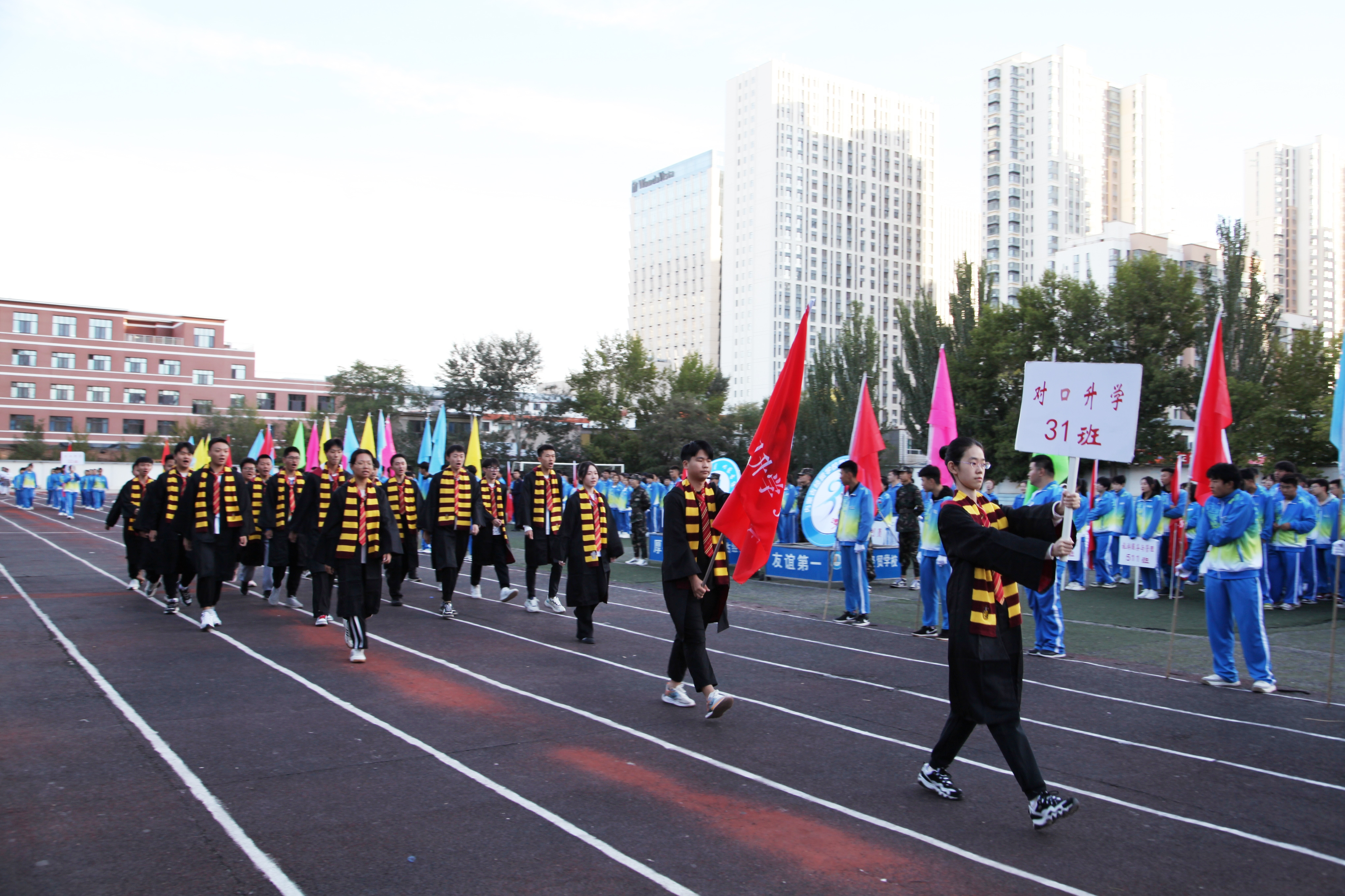 在国旗护卫队的引领下,校徽队、会徽队、彩旗队、裁判员代表队、各班级代表队神采奕奕、精神饱满地进入会场接受检阅。整齐划一的步伐、协调有力的动作、激昂嘹亮的口号无不彰显着经贸人蓬勃向上的精神面貌。