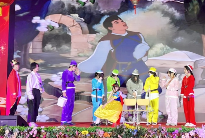 在“多彩校园”这一篇章,同学们将青春奉献在这里,将热血挥洒在这里:舞蹈《爱你》、《Sunshine Girl》、《It’s ok》在舞者欢跃的脚步中跳出青春的旋律;《社会摇串烧》、《歌曲串烧》将同学们呼声最高的节目一一展现,大饱眼福;音乐社成员在《自由自在》中,放飞自我,释放天性,使整个礼堂的气氛霎时沸腾了起来;动感舞台剧《我爱学习》、新编儿童剧《白雪公主》编排巧妙、立意新颖,引起欢呼阵阵!