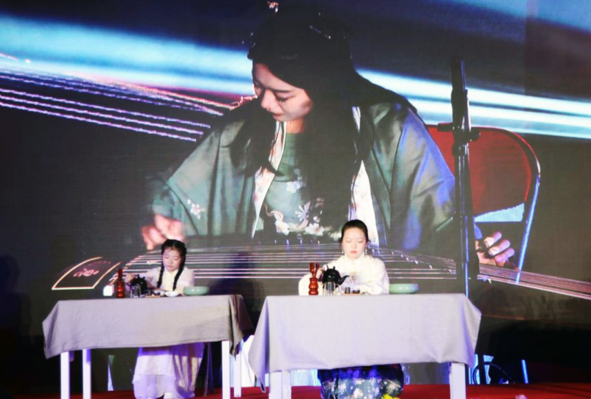 第三篇章“同心筑梦”选取的每一个节目都从不同侧面体现出各族儿女为筑牢伟大的中国梦所付出的不懈努力!歌曲《紫荆花盛开》唱出中国人民洗雪了香港被侵占的百年国耻;茶艺表演《青花瓷》展现了中国历史悠久的传统文化;舞蹈《声声慢》向后人演绎了至刚至柔的婉约词风……演出现场老师们也纷纷拿出了看家本领,李卓宁老师的蒙古族舞蹈《顶碗舞》,让我们体验了最具特色的民族文化;赵璐老师和学生云琬淇带来的《月半小夜曲》,让我们在优雅的歌声中感受月光下的浪漫;由达来、白玉宝、乌日尼勒老师带领学生们用蒙语演唱的《梦中的额吉》赞美了“草原母亲”那跨越地域、血缘的大爱,他们的节目为晚会的成功举办增添了浓墨重彩的一笔。