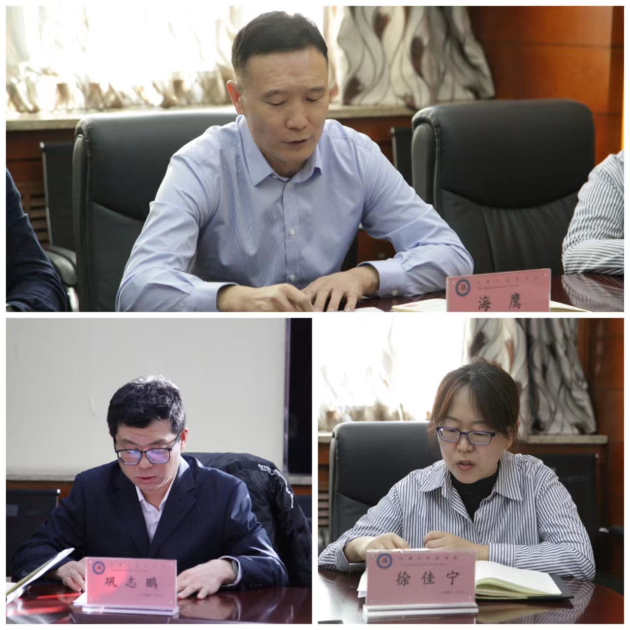 新任校领导海鹰、巩志鹏、徐佳宁三名同志分别作任职表态发言;现领导班子成员夏凯、胡格吉勒图两位同志作表态发言。
