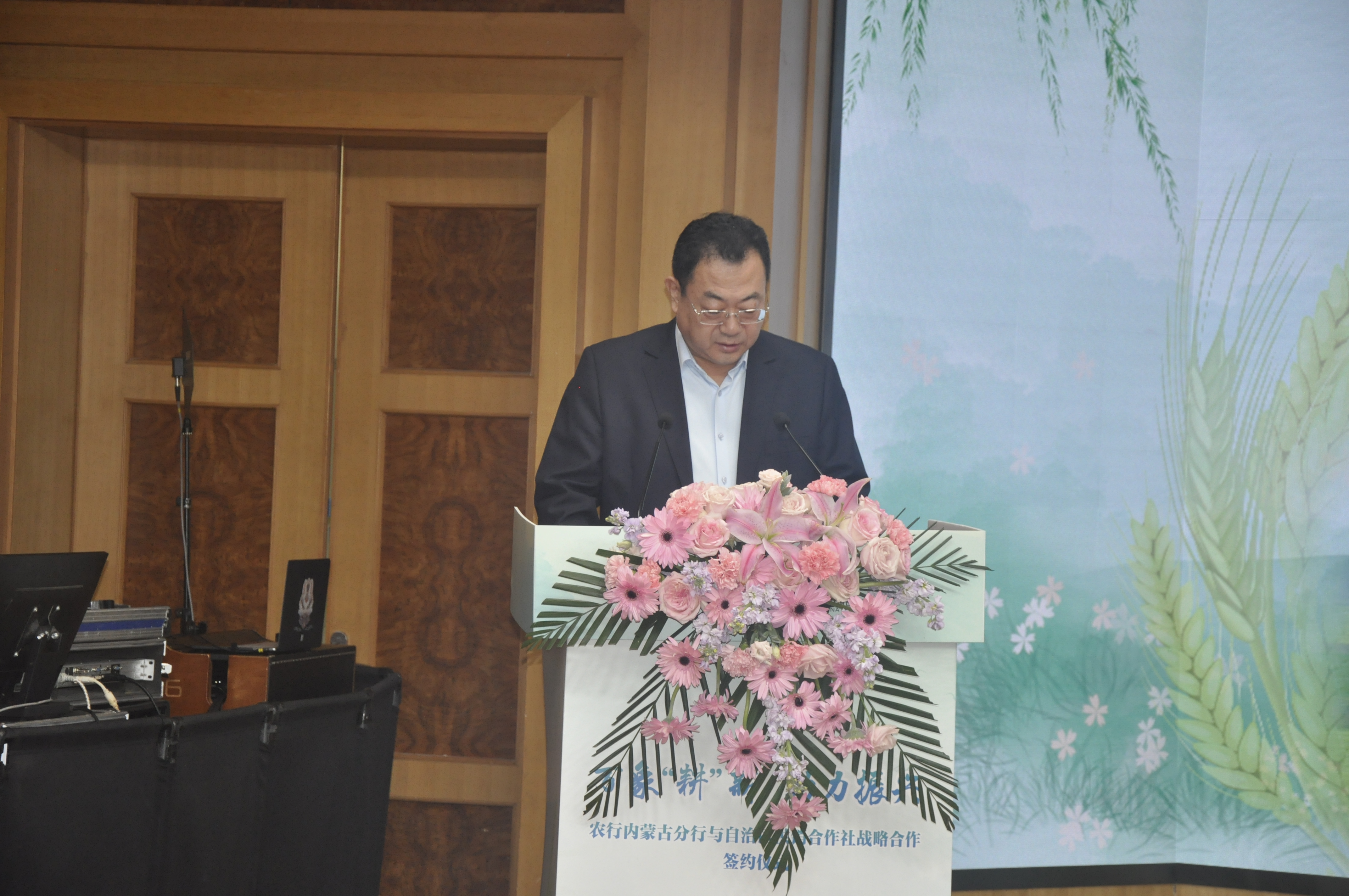 付晓在致辞中表示,供销合作社与农业银行同为服务“三农三牧”的国家队,都有着因农而生的历史渊源,都有着因农而长的发展道路,也都有着新形势下因农而强的共同战略目标,此次战略合作协议的签订,是双方强强联手,携手服务内蒙古农牧业现代化和乡村全面振兴的生动实践,下一步,农行内蒙古分行将深入贯彻自治区经济工作会议,金融工作会议部署,全面助力自治区办好两件大事,提升金融服务能力,拓宽金融服务渠道,书写好金融乡村振兴大文章。