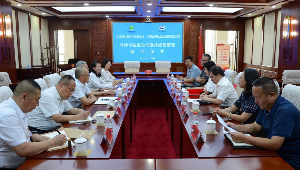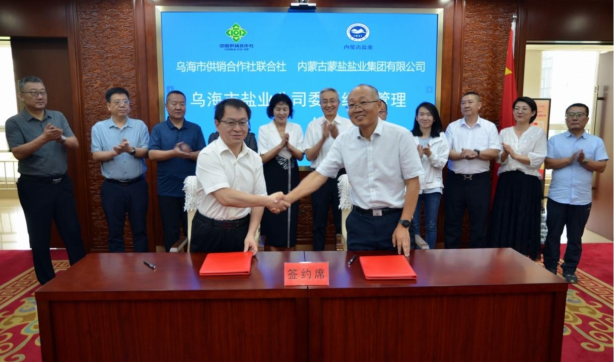 6月25日,内蒙古蒙盐盐业集团有限公司与市供销合作社联合社企业委托经营签约仪式在乌海市举行。蒙盐集团党委副书记、董事、总经理王臣、市供销合作社党组书记、理事会主任胡应龙签署市盐业公司委托经营管理协议。市工信局、国资委、市市场监管局等部门领导出席签约仪式。