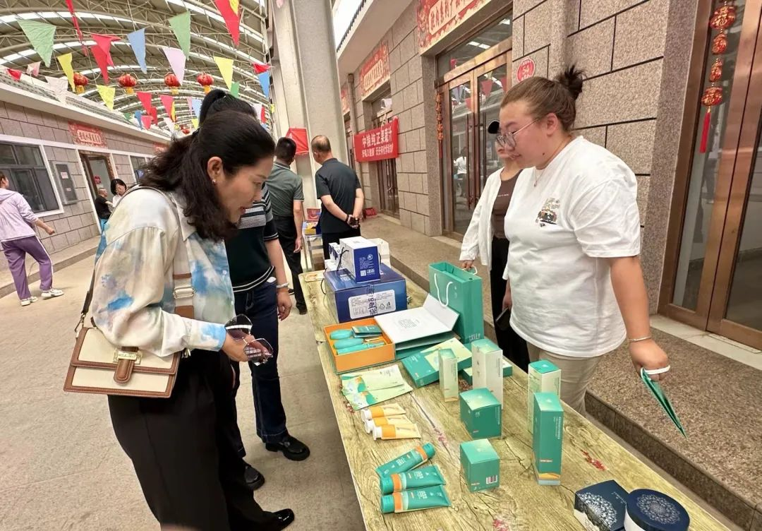 活动现场,除了展出其他国家和地区的商品外,阿拉善右旗供销合作社联合社积极借助此次展销平台,经过认真筛选,精心组织全旗供销系统特色企业参加了此次国际商品展销活动,在阿拉善右旗泰隆市场院内现场展示销售驼酸奶、驼肉制品、驼乳化妆品等本土特色产品,吸引了各地旅客和参展观众前来品鉴体验。