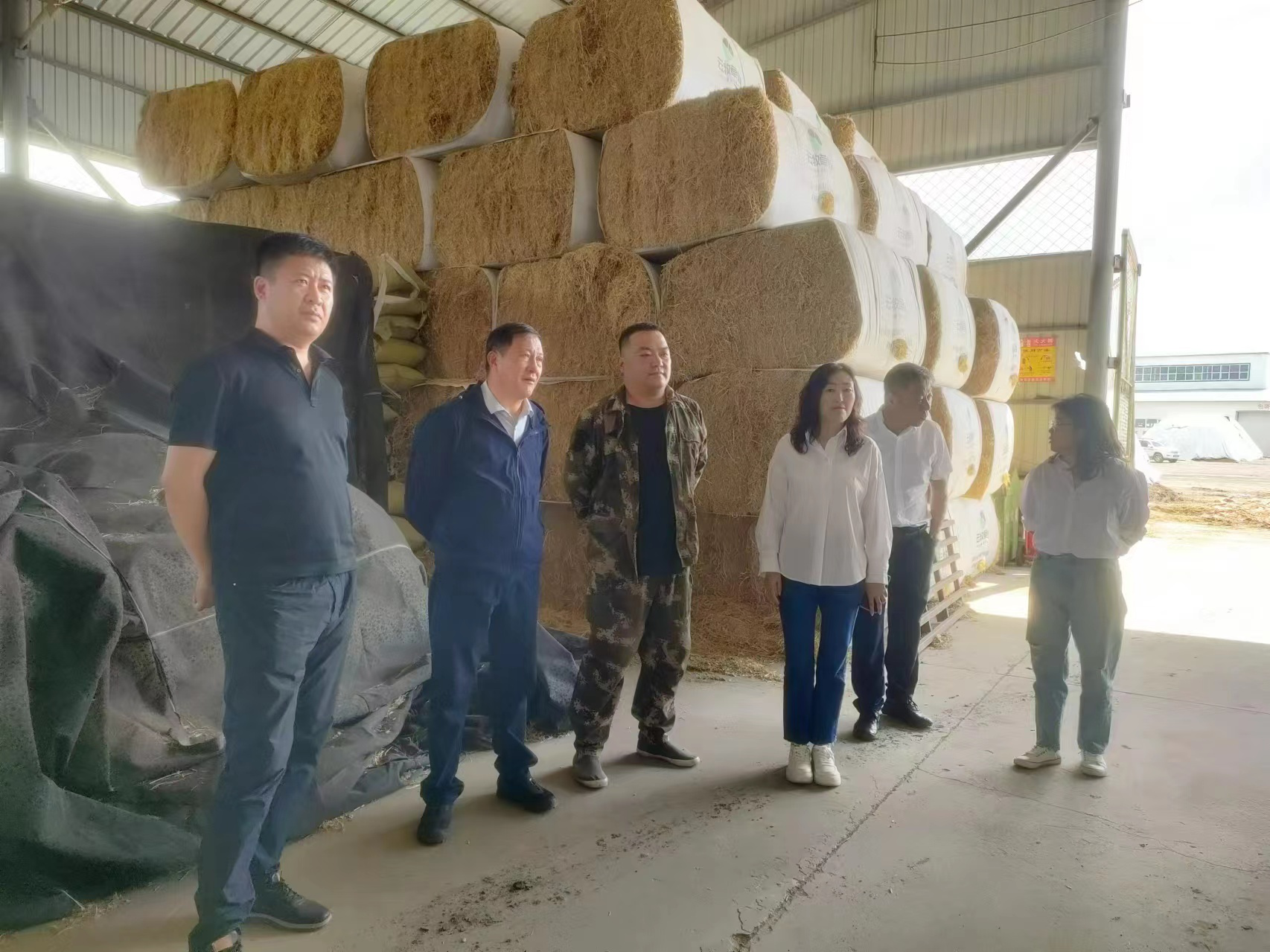 图为:调研组一行调研锡林郭勒盟饲草加工储备情况
