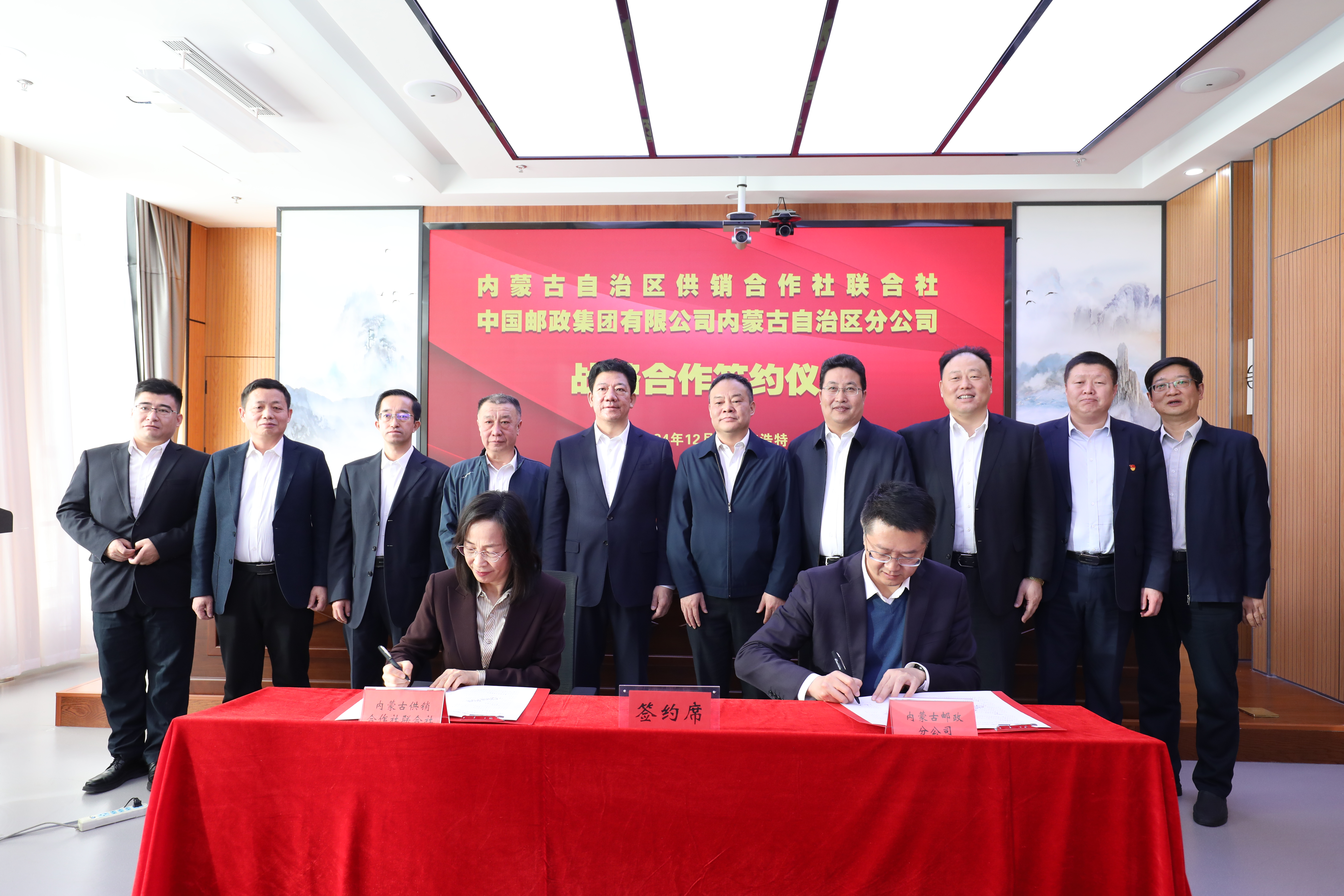 2024年12月31日,动漫 (以下简称区社)与中国邮政集团有限公司内蒙古分公司(以下简称内蒙古邮政分公司)在呼和浩特签署战略合作协议。区社党组书记、理事会主任乔允利与内蒙古邮政分公司党委书记、总经理蔡明辉出席签约仪式并就双方加强合作进行会谈。区社党组成员、理事会副主任王红朴与内蒙古邮政分公司党委委员、副总经理潘峰代表双方签约。内蒙古邮政分公司党委委员、副总经理宝德勒、荣建国出席了本次签约仪式。全区各盟市供销合作社、邮政分公司通过视频会议系统共同见证了本次签约仪式。