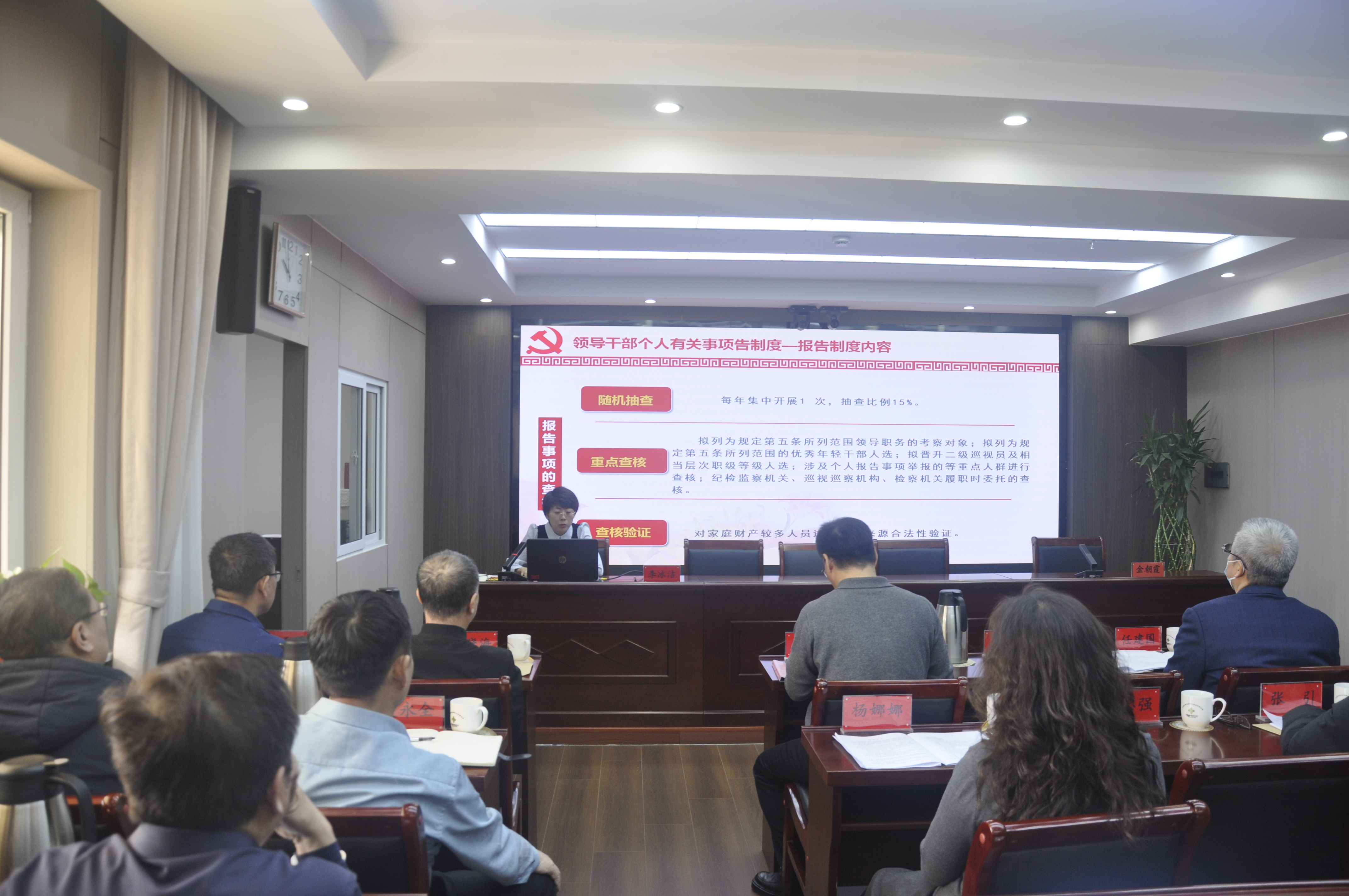 为进一步做好做实领导干部报告个人有关事项工作,切实提高填报工作质量,2月14日上午,区社组织召开直属系统领导干部报告个人有关事项工作专题培训会,区社党组成员、理事会副主任金朝霞主持会议并讲话,区社直属单位领导班子成员,机关四级调研员以上干部40余人参加培训。
