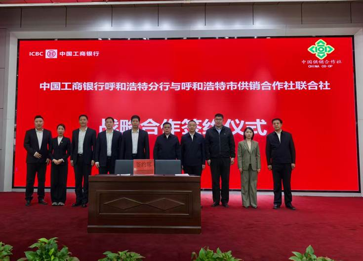 2026年3月5日,呼和浩特市供销合作社与工商银行呼和浩特市分行签署战略合作协议,市供销合作社联合社党组书记、理事会主任张利平和工行呼市分行行长于永志出席签约仪式并致辞。工行呼市分行为市供销合作社系统新型农业经营主体、社有企业定制了供销贷、收储贷、种植e贷、养殖e贷、新农e贷等多种特色专属金融产品,现场为涉农企业发放贷款1200万元,累计发放贷款3.2亿元,并将赛罕区供销合作社、土左旗供销合作社列为“农村普惠金融服务点”,由工商银行提供专业化金融服务,持续简化涉农主体办事流程、提升服务效率。
